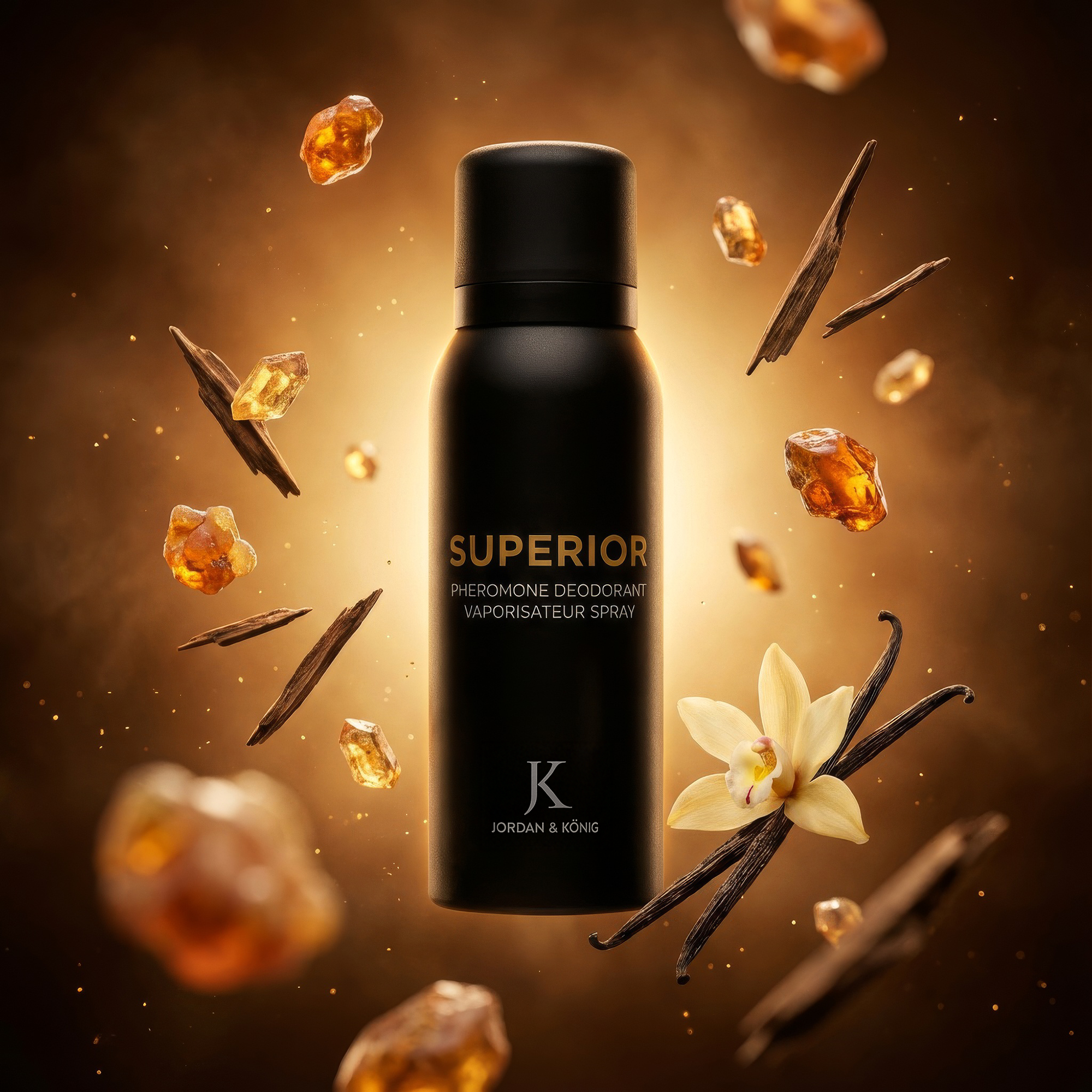 Tonkabohne, Leder und warme Mandel – die Signatur von SUPERIOR®, jetzt direkt auf deiner Haut. Mit dem JK Pheromonkomplex wird dein täglicher Schutz zur unsichtbaren Präsenz.